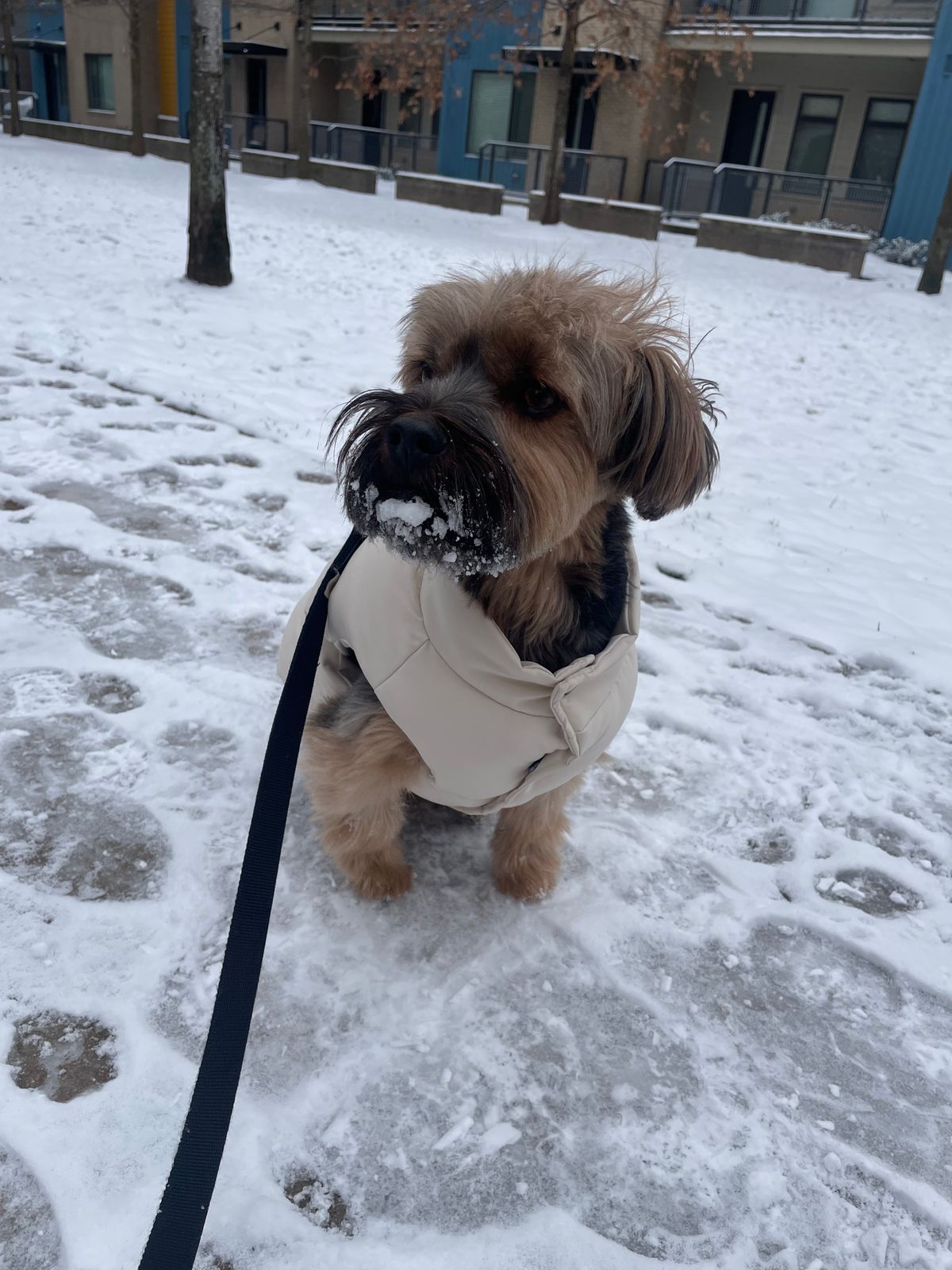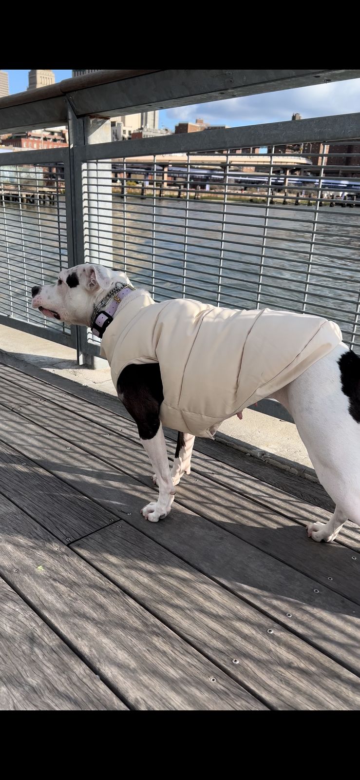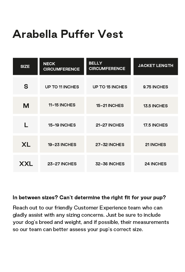 I absolutely love everything about this puffer vest. The quality is amazing! My pup is wearing a size medium. It fits her tiny bit big, yet I also feel a small would’ve been too snug, especially because she has a harness on underneath. She’s 10.4 pounds. Her neck is 11 inches and her body is 16 inches. It is also easy to put on and take off, not to mention it is super stylish and plush. I wish it came in more colors, which is my only complaint. Get it, it’s totally worth it!