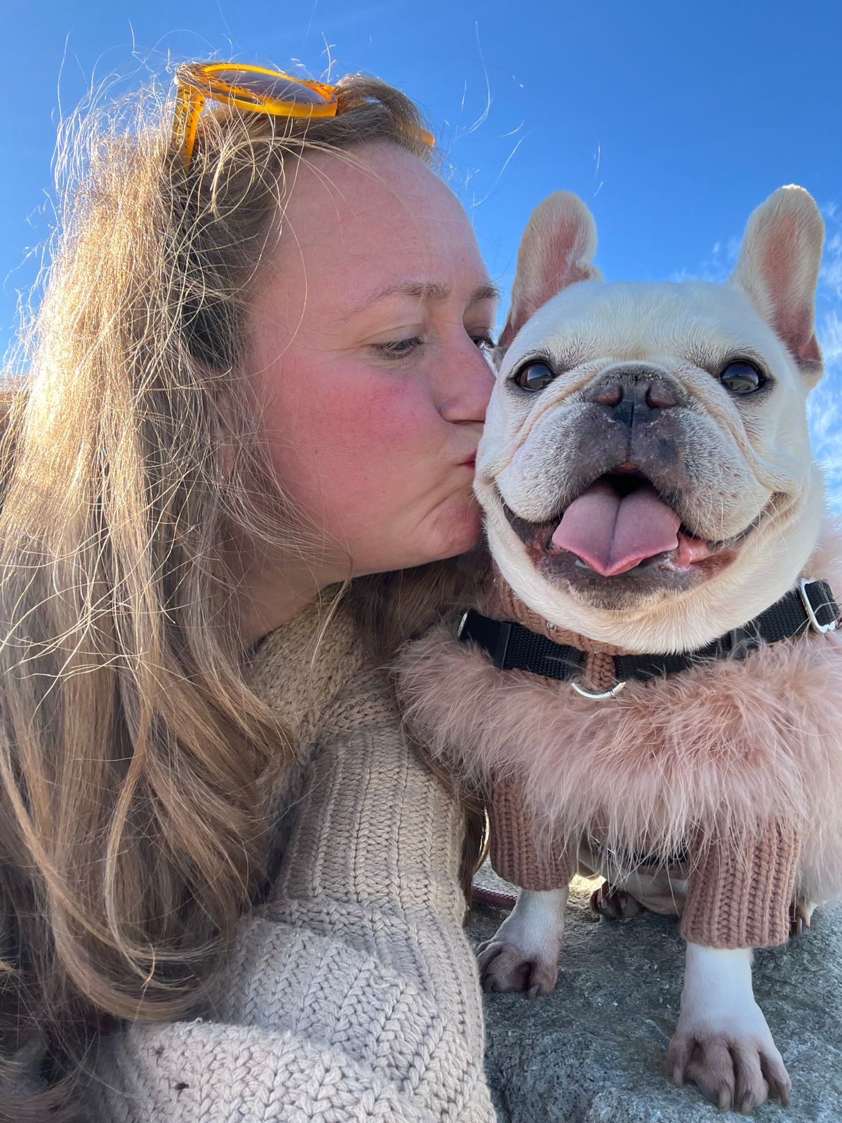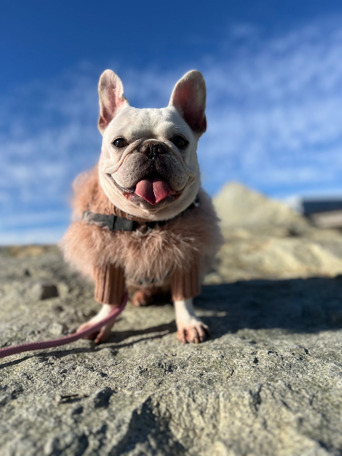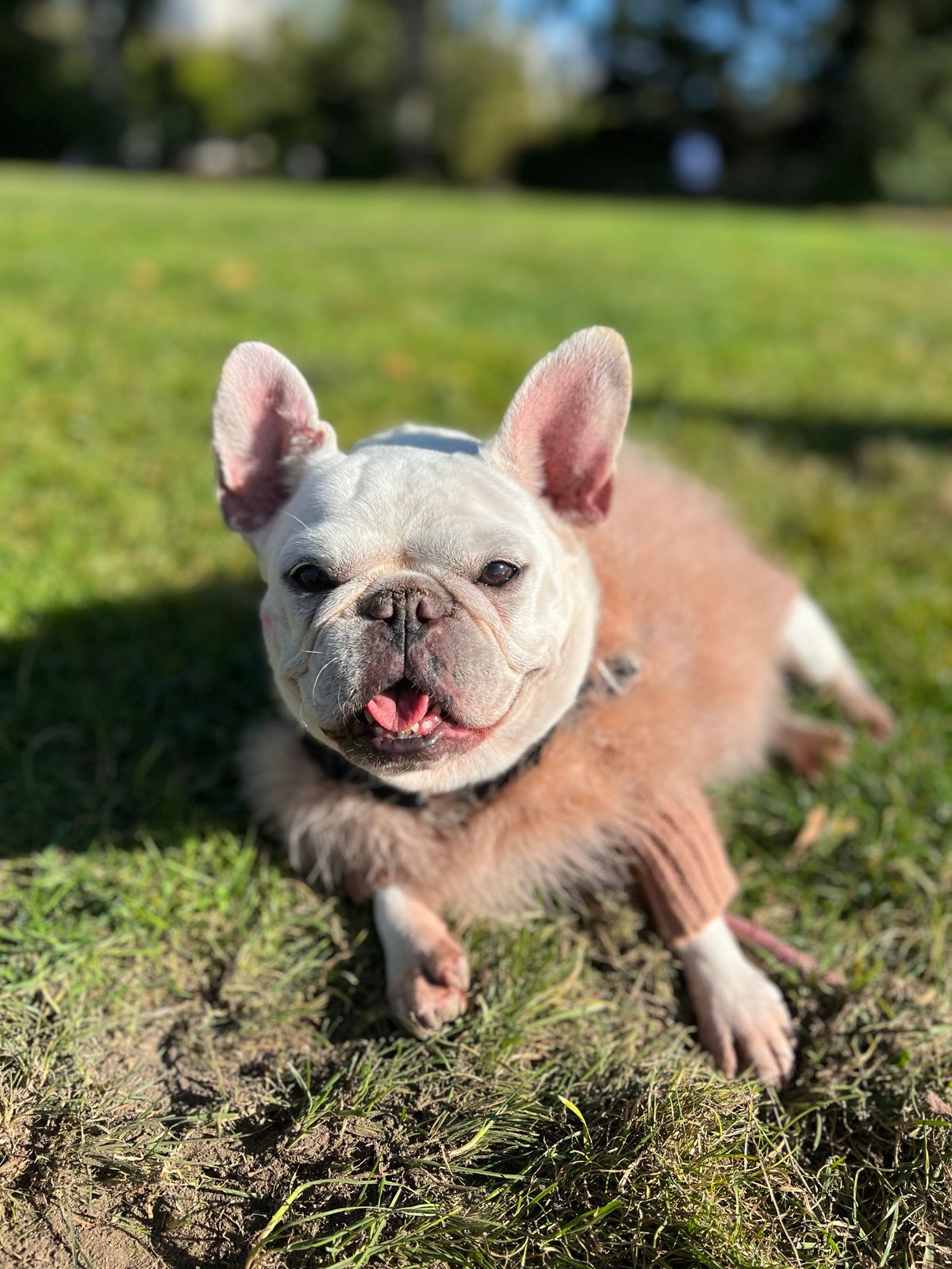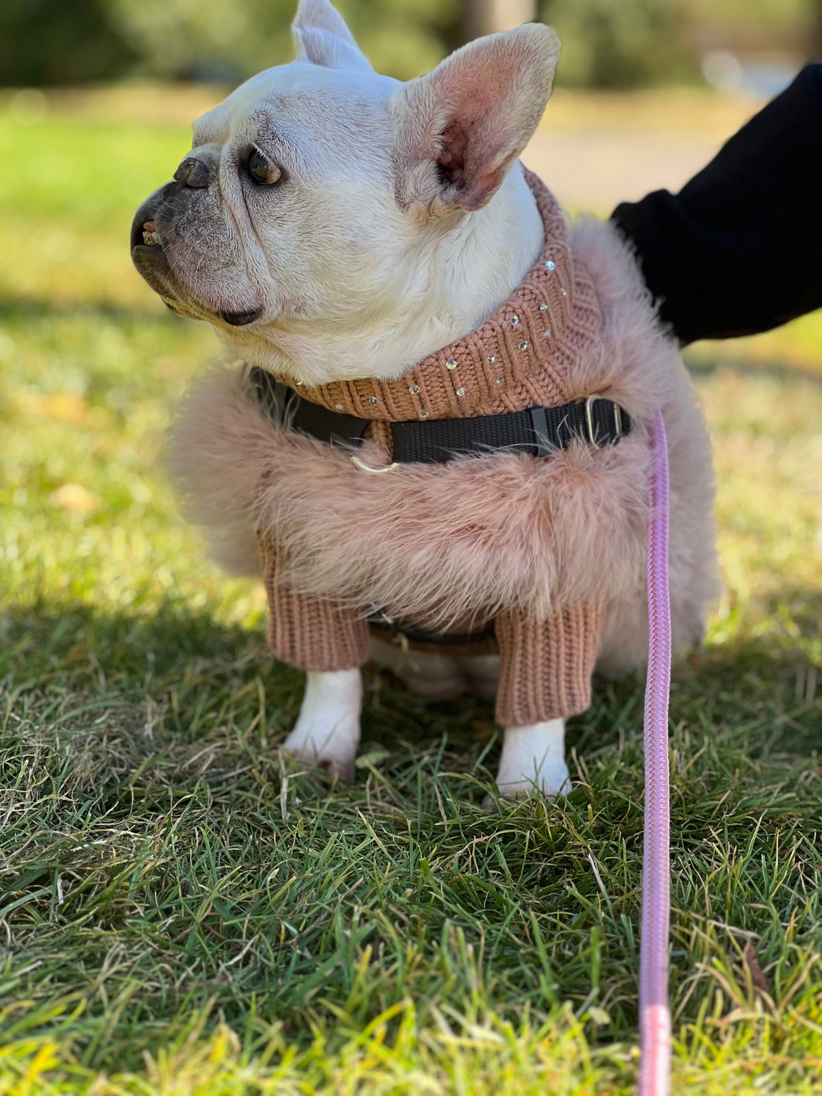 This sweater is so beautiful, whenever they wear it people stop to ask where they can buy one! The only thing I wish is that it came in a shorter length. Frenchies need to size up for the neck and chest, which in turn make the back length to long for them. That is my only complaint, which honestly doesn’t bother me that bad. My dogs range from 20 lbs - 27 lbs they all wear the size Lg.