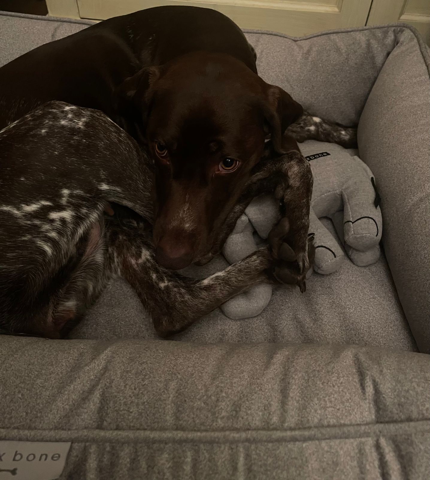 We’ve trialed many different beds but I think he enjoys the Max Bone beds the most. They have a nice cushioned border that he likes to rest his head on and I think they provide a sense of security for him. I love them because they look great and the neutral colors match my home decor.