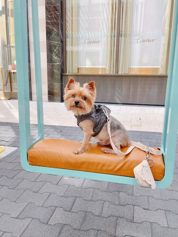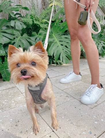 We went from 20° winter days to 75° days! No longer am I layering up clothes to stay warm, I’m now focused on staying cool while looking fashionable. This means really putting an emphasis on my accessories! You can change your entire look by merely mixing and matching your harness, leash, and poop bag. I mixed and matched the Elma Poop Bag holder, the Globe Trotter Harness, and Leash.