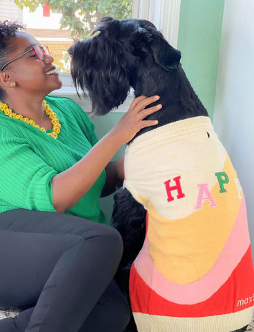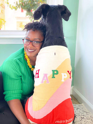 The great news is, we got through it, and you can too. They always say you’ll have a perfect pup after a year, just stick with it. As hard as that might be to hear, it’s true. It took us about a year of working with our dog, bonding through training, learning her love language, and expecting her to only be herself before we were able to unearth that diamond in the rough, and oh what a beauty she was! I always tell people she is the best dog I’ve ever owned, and I’m so glad I decided to commit to loving her. She has truly enriched my life more than I could ever imagine. Today we can honestly say we’re HAPPY, and we have the Maxbone jumper to prove it!