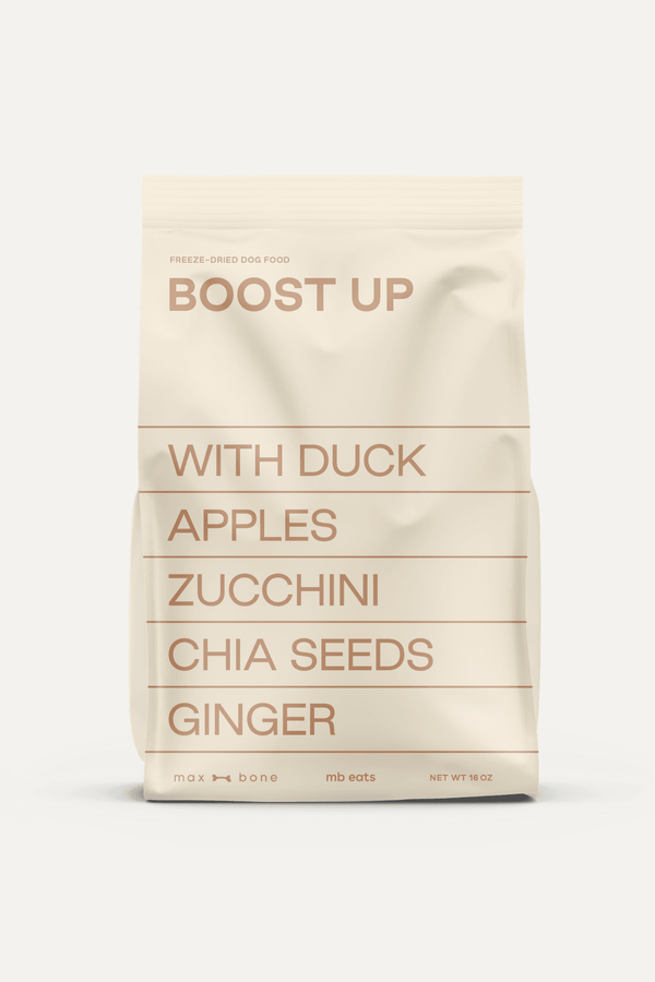 Whole Duck, Duck Heart, Duck Liver, Duck Necks, Broccoli, Apple, Zucchini, Sweet Potato, Chia Seeds, Blueberries, Seaweed, Carrots, Salt, Ginger, Alpha-tocopherol acetate (source of natural vitamin E), Fish Oil, Zinc Proteinate, Copper Proteinate, Manganese Proteinate.
